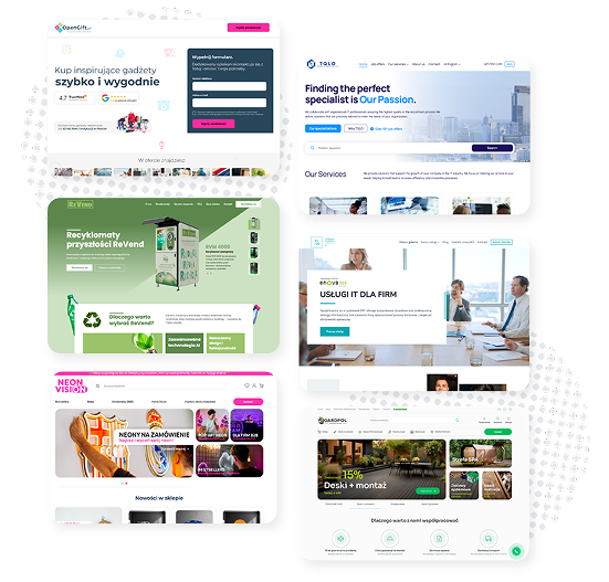 System do umawiania spotkań? Live chat? Płatności online? Rejestracja użytkowników? Wszystko to – i znacznie, znacznie więcej – możemy wkomponować w projekt Twojej firmowej strony. Dzięki temu witryna nie będzie tylko wizytówką, a realnie wpłynie na zwiększenie sprzedaży.
